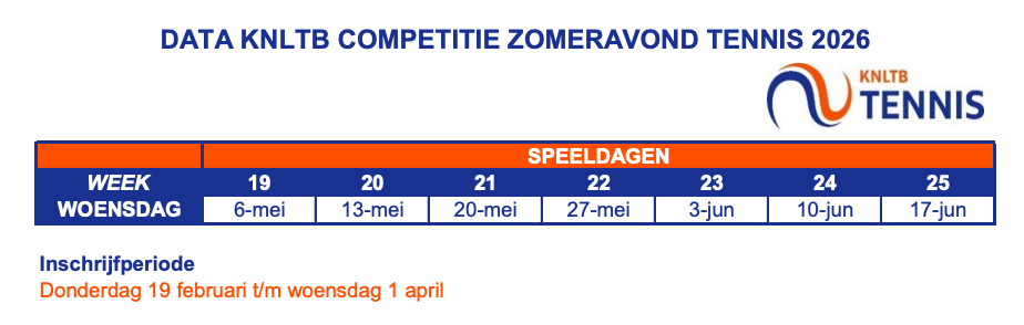 De KNLTB TENNIS Zomeravondcompetitie 2026